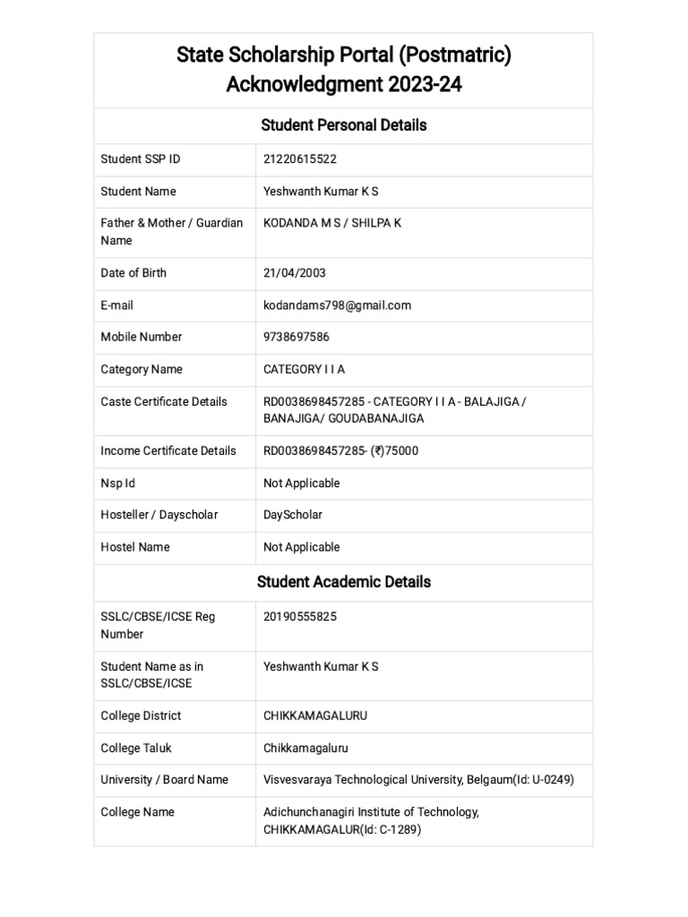 State Scholarship Portal PDF